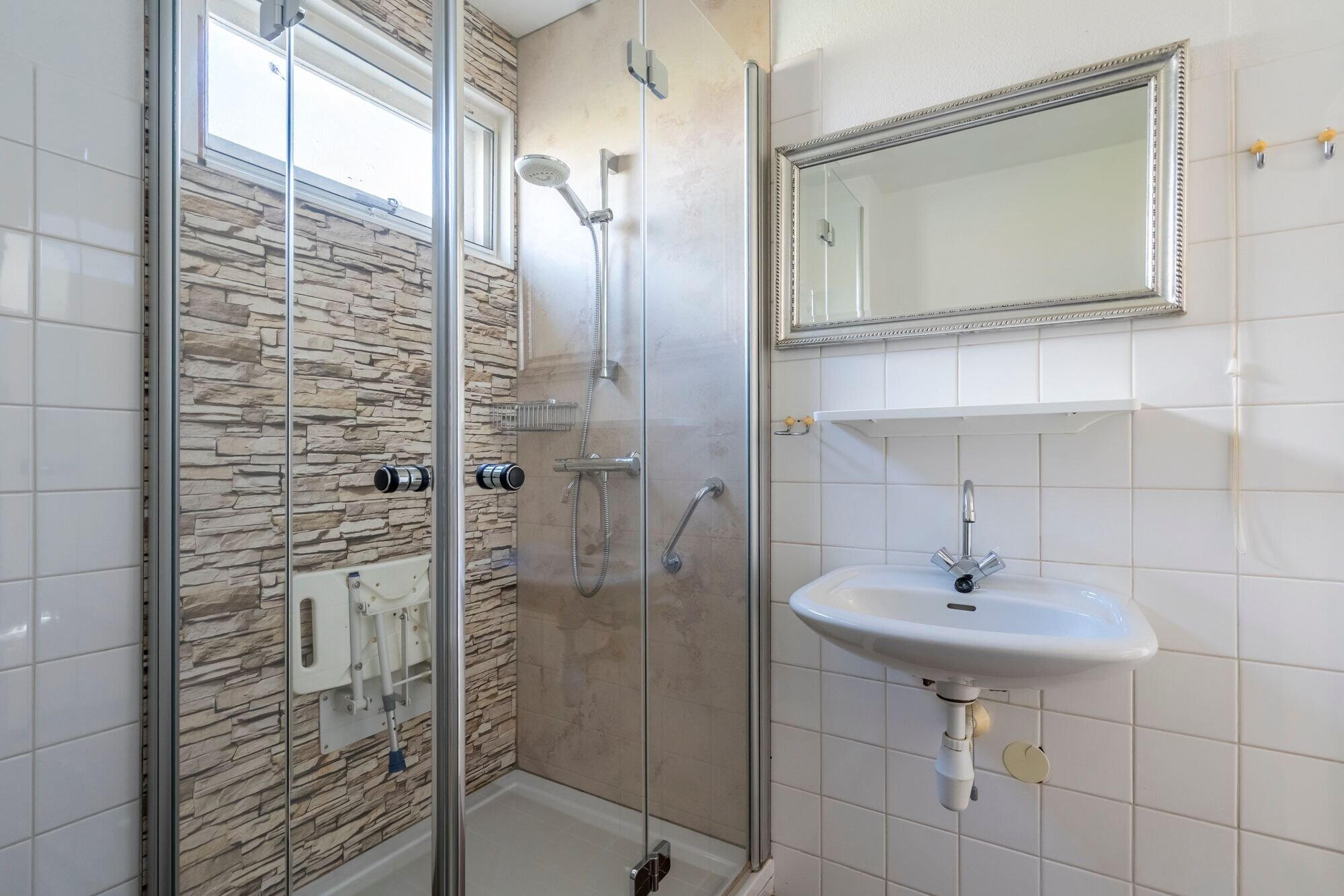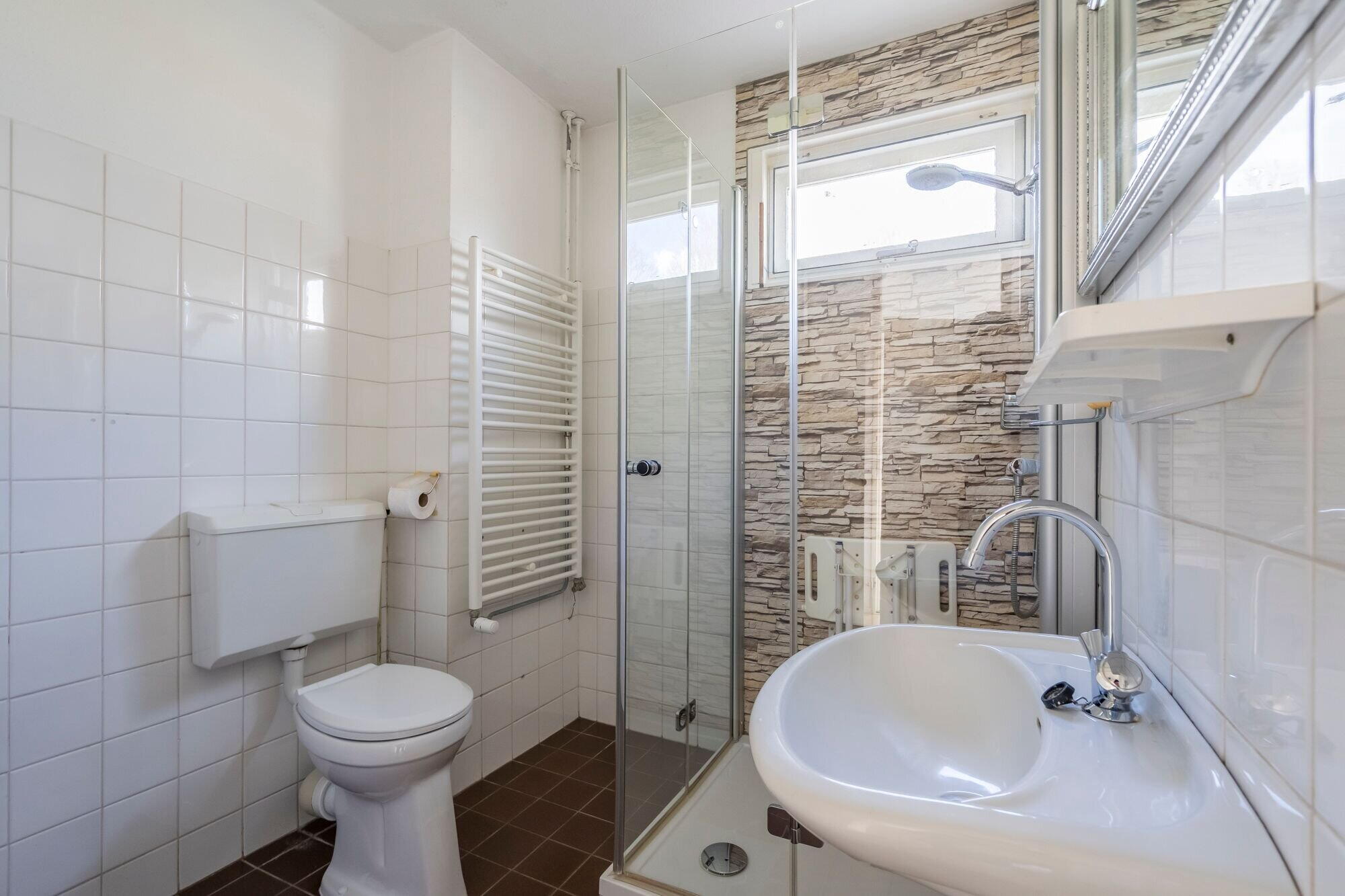 - Douche, toilet, en wastafel