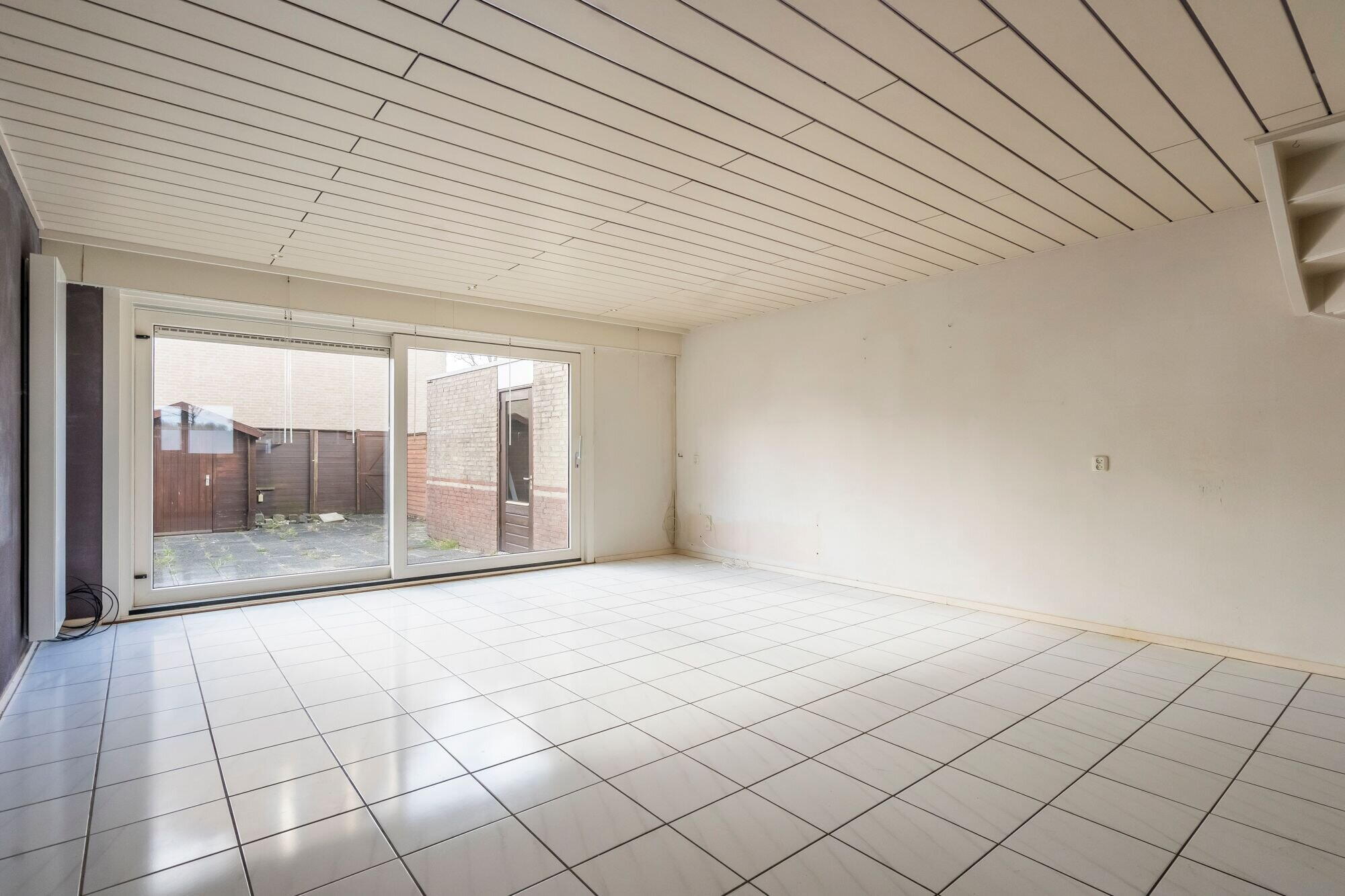 De praktische woonkamer vormt één geheel met de open keuken. De keuken is gelegen aan de voorzijde van de woning. Vanuit de woonkamer bereikt u via de (kunststof) schuifpui de tuin op het westen met volop zon vanaf begin middag tot zonsondergang. In de tuin bevindt zich de praktische berging.