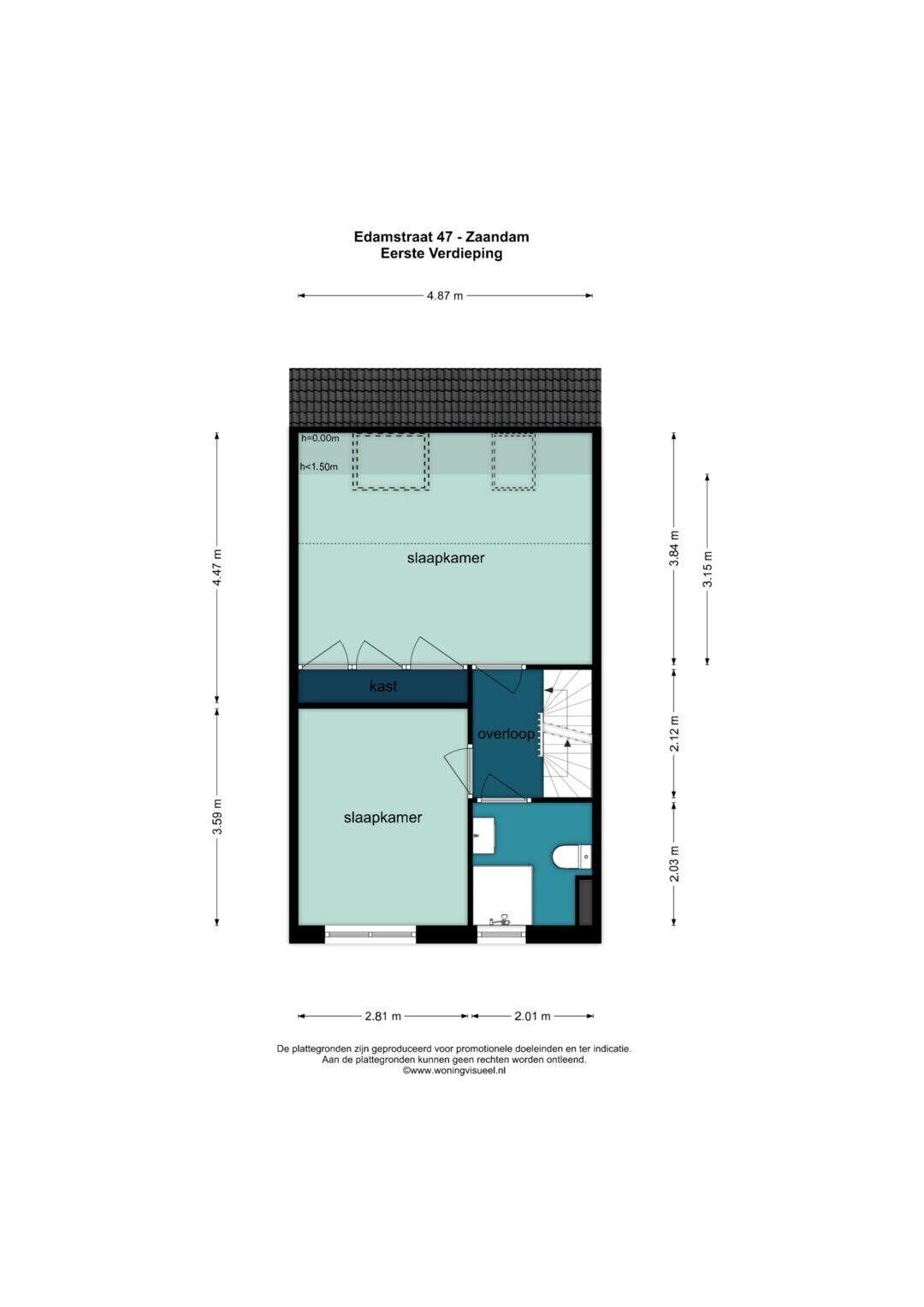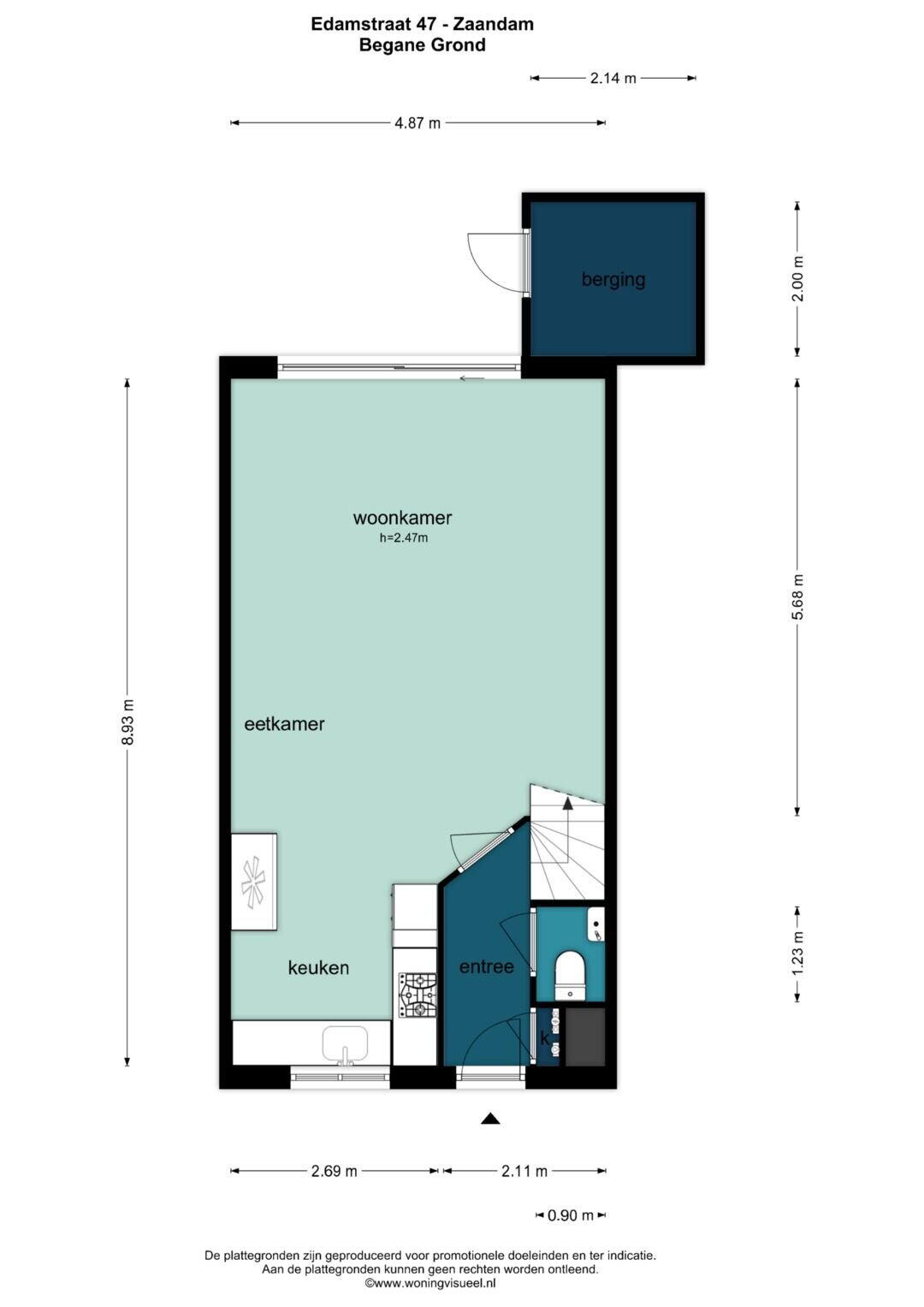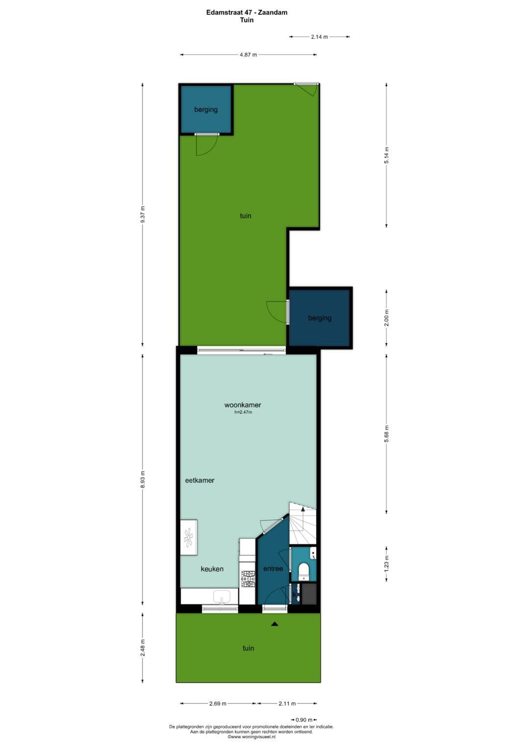 - 47 m² (9,00 meter diep en 5,20 meter breed)